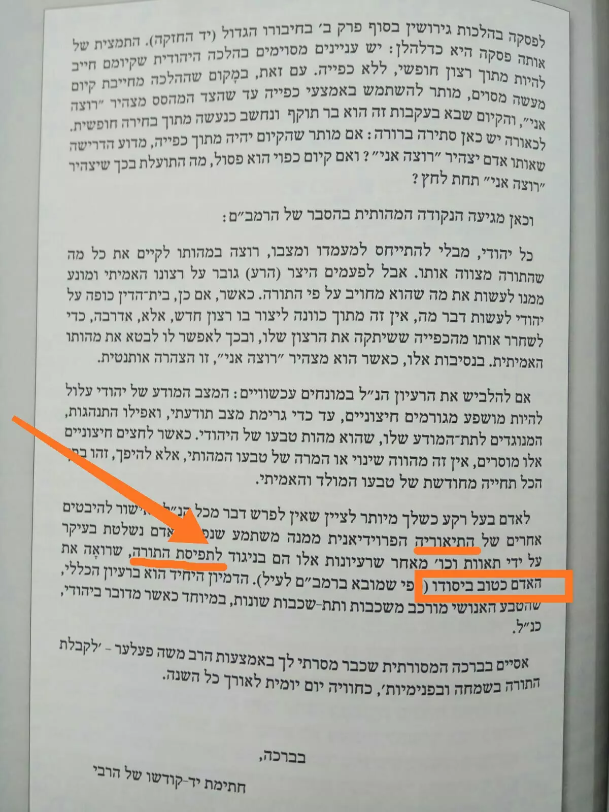 (המכתב נלקח מספר שנקרא שלום וברכה פרופסור גרין, מכתבים בין הרבי מלובביץ' לפרופסור):